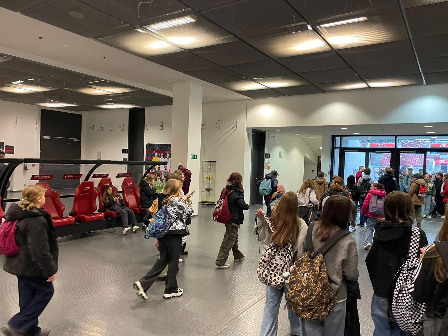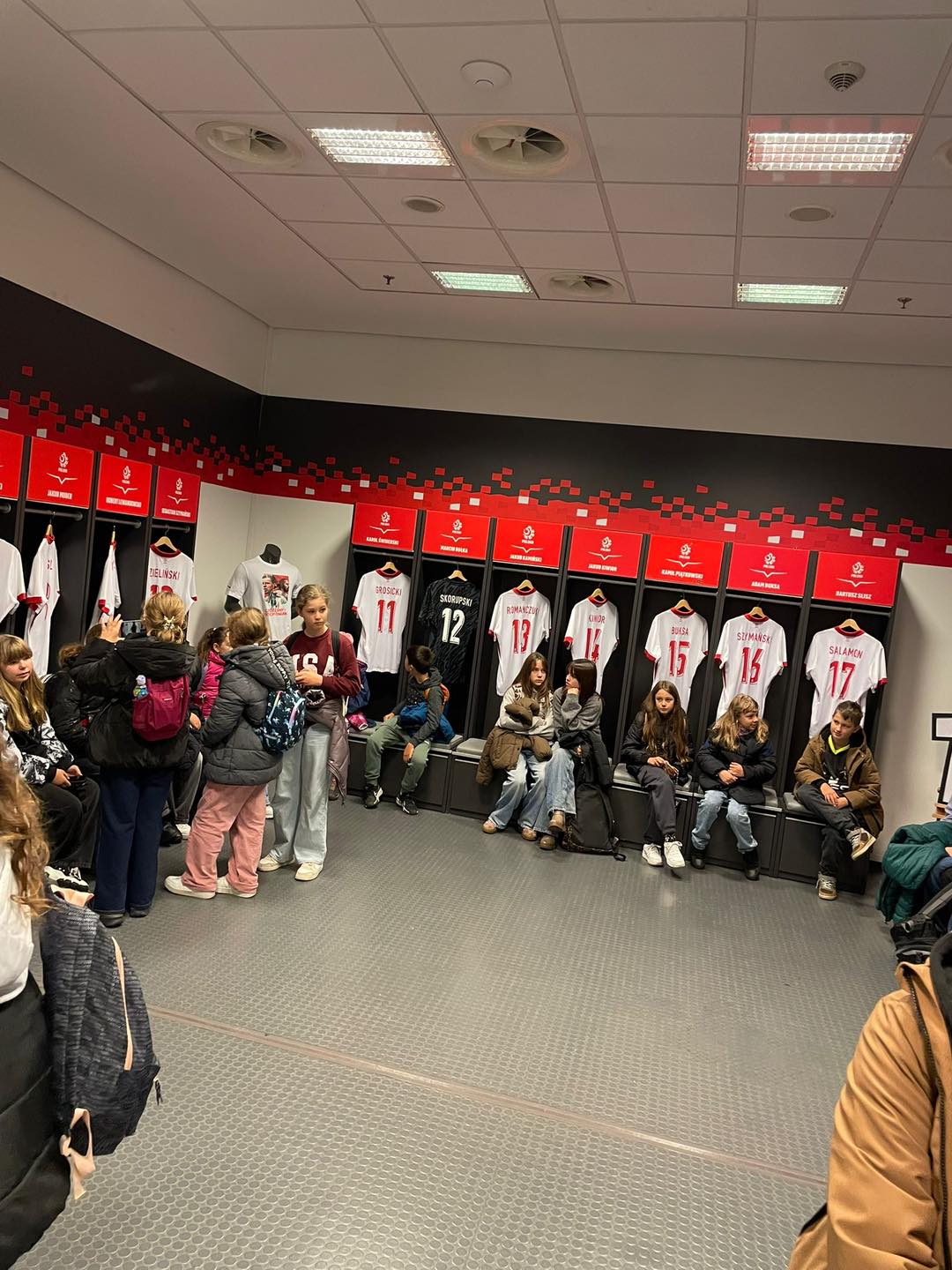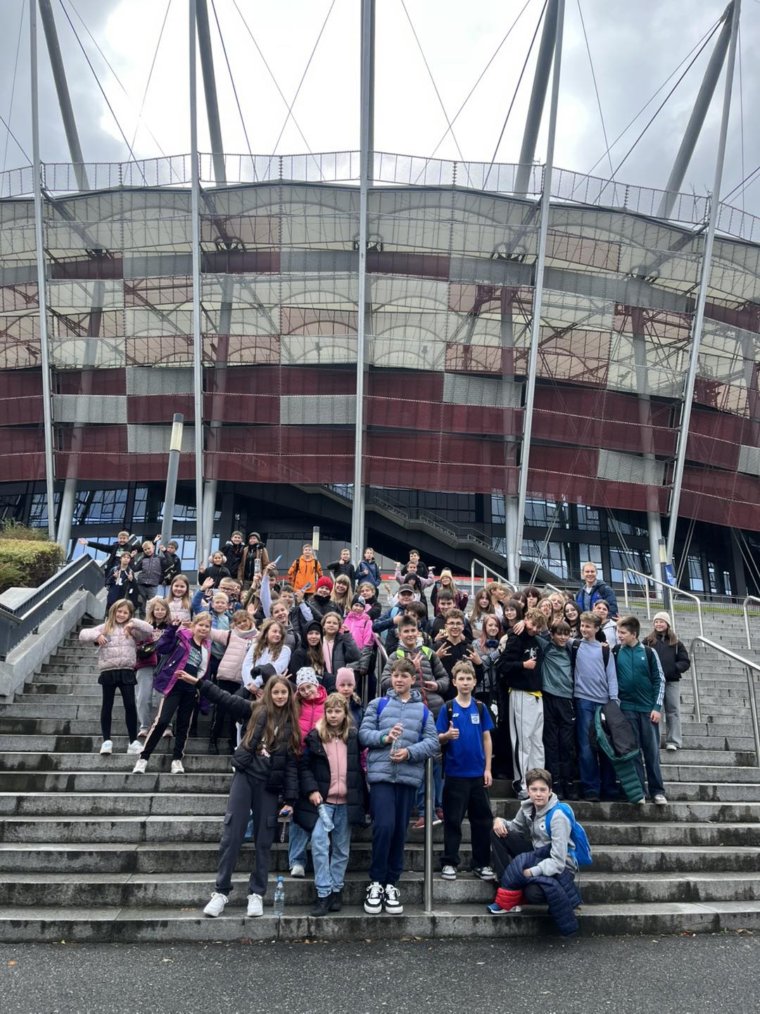 Najpierw odwiedziliśmy Stadion Narodowy, gdzie mogliśmy zobaczyć ten wyjątkowy obiekt od środka. Zwiedziliśmy trybuny, weszliśmy do szatni Reprezentacji Polski, a przewodnik opowiedział nam o niezwykłej konstrukcji i historii powstania tego stadionu.