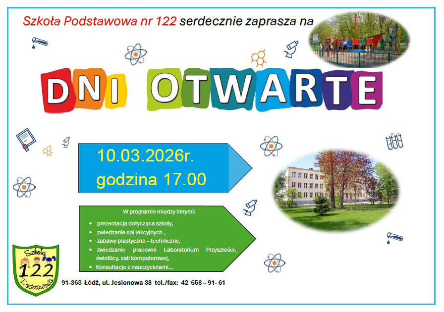 W latach 2023-2025 Szkoła Podstawowa nr 122 w Łodzi brała udział w projekcie Szkoła dostępna dla wszystkich organizowanym przez UNICEF, Ministerstwo Edukacji Narodowej, Instytut Badań Edukacyjnych. Projekt oferował doskonalenie zawodowe w pracy z uczniami ze zróżnicowanymi potrzebami edukacyjnymi i przygotowanie do...